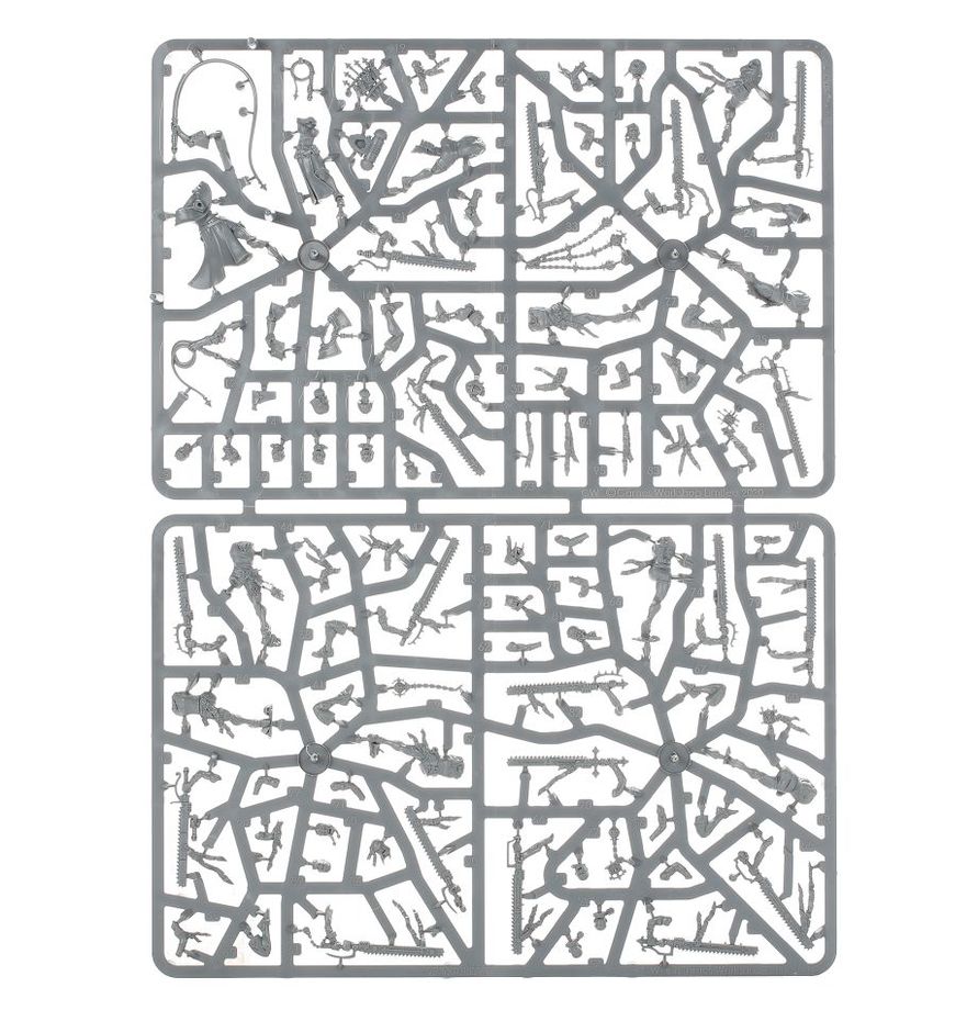 The kit builds nine Repentia armed with penitent eviscerators. Each body has a choice of two sets of arms for added variety. The Repentia Superior wields a pair of neural whips – one coiled and the other mid-lash – though one can instead be swapped for a holy tome. Repentia Superior can also be assembled with a choice of two heads (either with or without helmet).