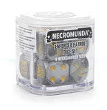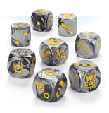 They say that justice is blind and so is luck, so what better way to bring law and order to the underhive than with these special Palanite Enforcer dice. These 8 16mm dice are dark silver with a black swirl effect and yellow numbers/icons.
