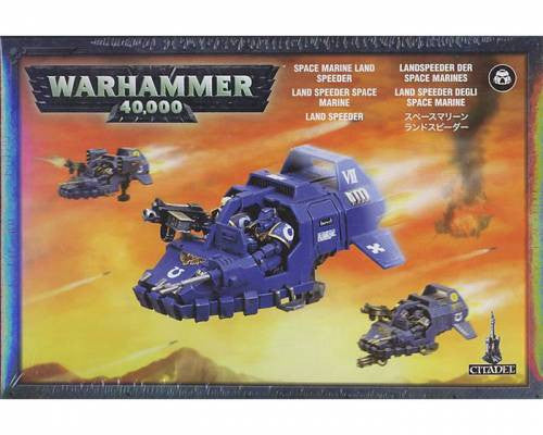 This box set contains one multi-part plastic Space Marine Land Speeder. This 60-piece kit allows you to assemble any of the three Land Speeder variants, including the Tornado and Typhoon pattern Land Speeders. This set contains an assault cannon, a heavy flamer, a Typhoon missile launcher, a multi-melta and a heavy bolter. Also included are Chapter symbols for the Blood Angels, the Dark Angels, the Ultramarines and the Space Wolves.
