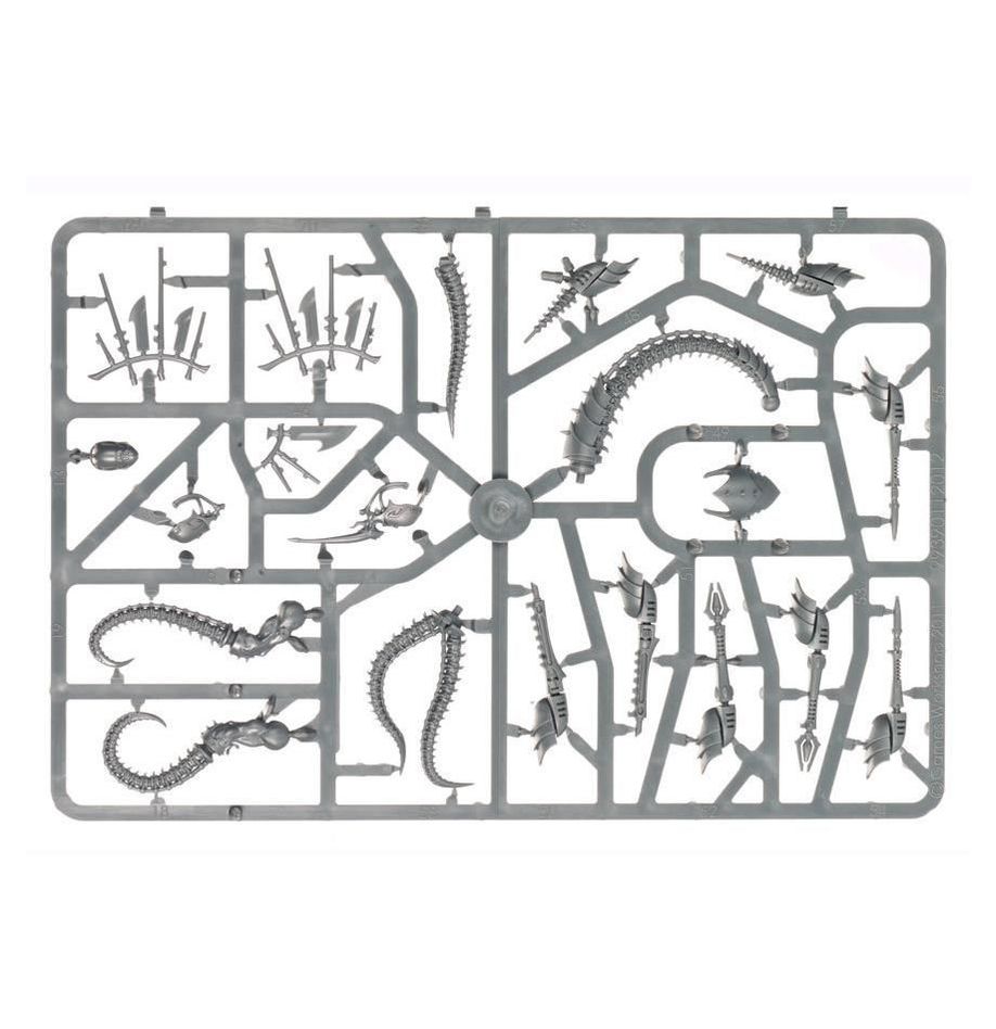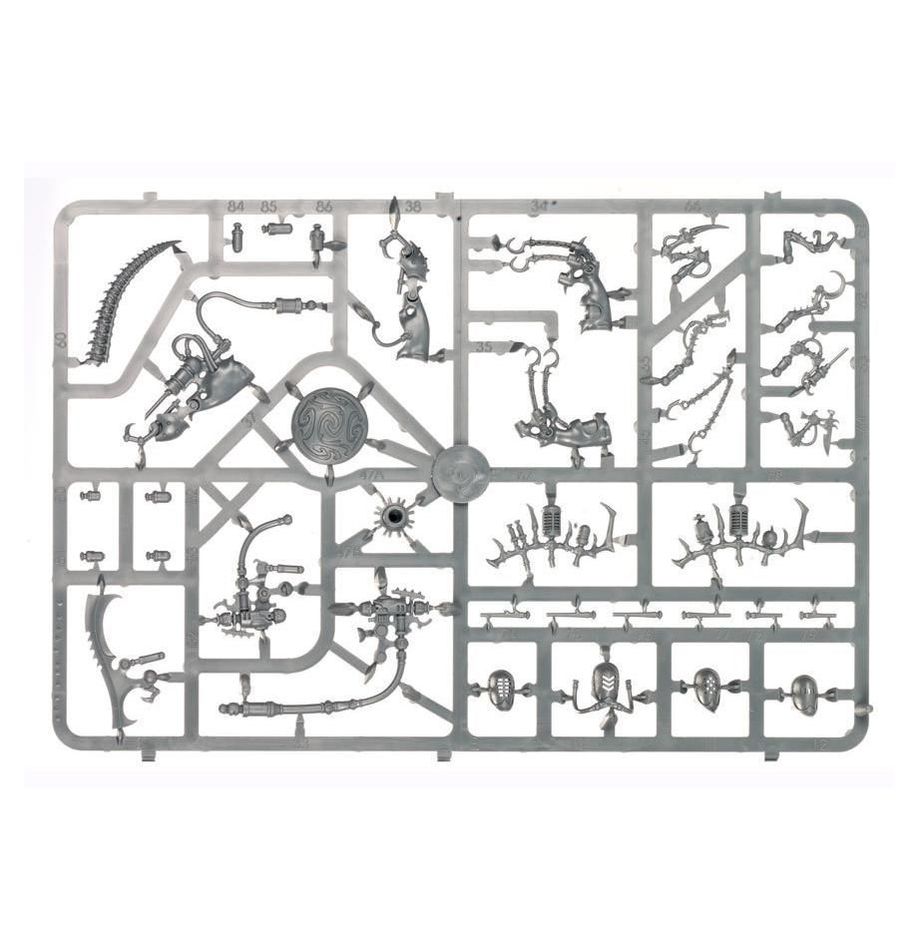 This multi-part plastic kit contains 89 components with which to make one Dark Eldar Talos Pain Engine or one Cronos Parasite Engine. The box includes all manner of features: chain-flails, ichor injectors, a liquefier gun and many syringes, as well as several variant heads and arms. It is a remarkably macabre addition to any Dark Eldar collection.