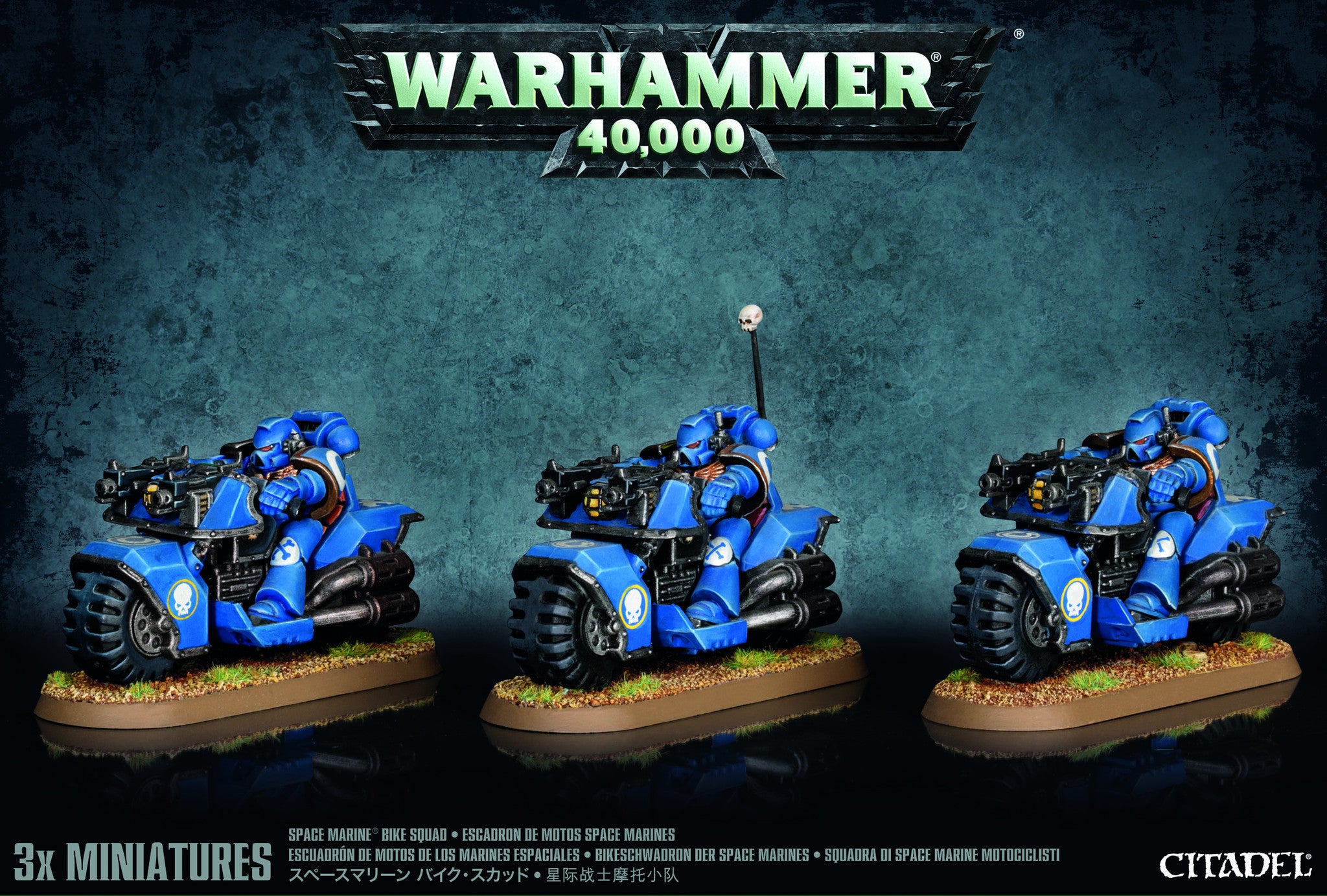 This box is the most cost effective way to buy three multi-part plastic Space Marine Bikes. The kit is supplied with three Bikers, which can be equipped with twin-linked bolters and bolt pistol. Also included is a Space Marine Transfer Sheet.