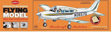 Now with LASER CUT BALSA PARTS. The first Beech designed airplanes appeared in the mid 1920's and since that time the beach Aircraft Corporation has grown into a world notable enterprise. The all-metal, low wing, fixed gear Musketeer represented a major advancement in low cost commuter planes of its day. Designed with honeycomb wing construction and one piece stabilizer the Musketeer has the operating simplicity, handling ease and gentle stall characteristics that are the trademark of all Beechcraft airplanes.