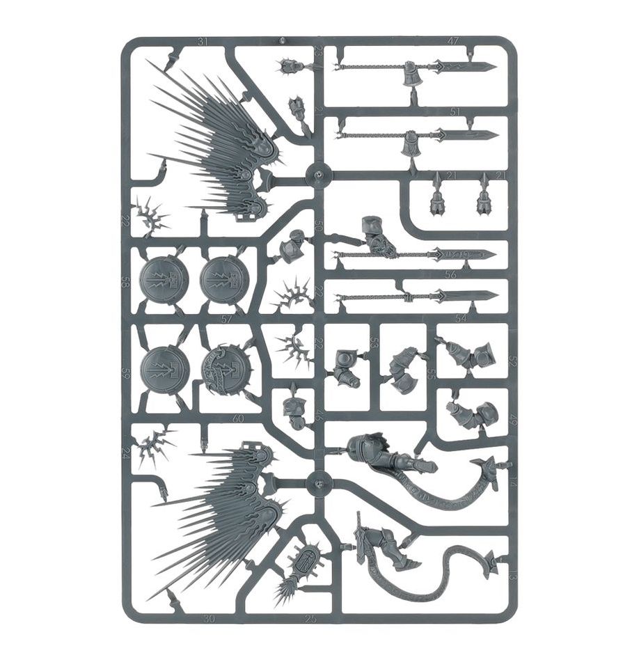 This multi-part plastic kit gives you everything you need in order to build 6 Prosecutors, avenging angels of the Stormcast Eternals. This variant is armed with either the choice of 2 celestial hammers or celestial hammer and sigmarite shield, with 2 sets of 3 special weapons available: grandblade, grandaxe or grandhammer. The hammer-wielding Prosecutors feature unique crest and helm options.