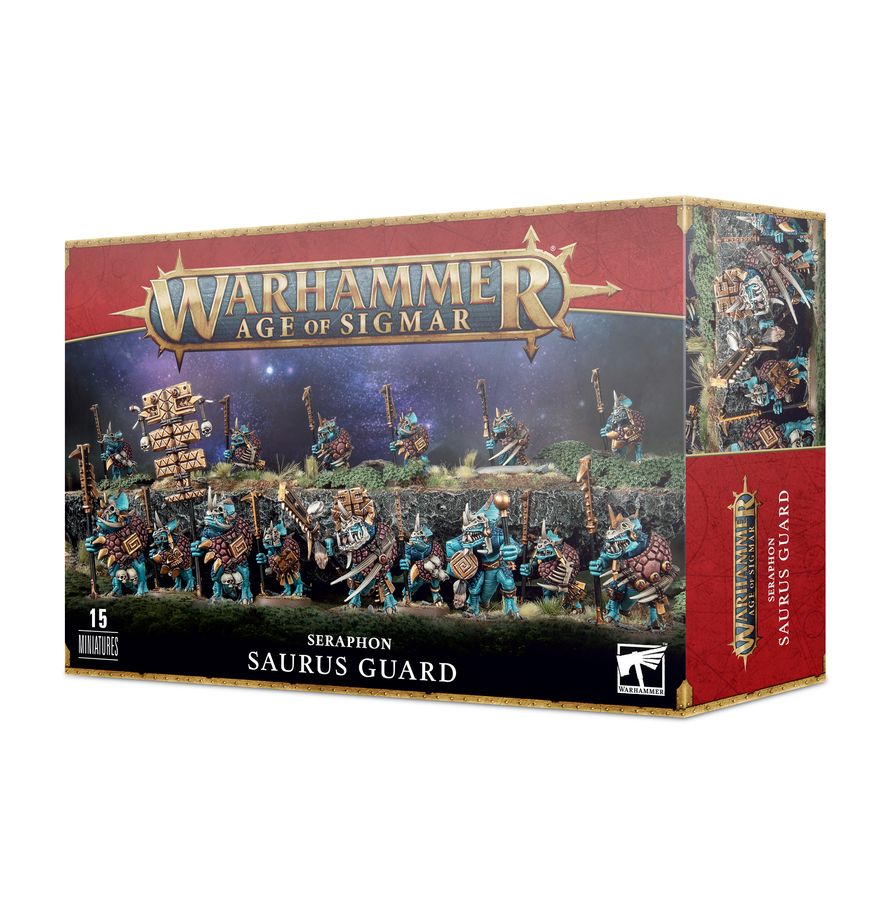 This multi-part plastic kit contains enough components to build an impressive fifteen Saurus Guard miniatures, armed with heavy celestite polearms and stardrake shields. One model can be optionally assembled as an Alpha Guardian, with its own decorative pieces. Parts to assemble a stardrake icon bearer and wardrummer are included, and there’s a host of shield designs, skulls and detritus with which to make your Saurus Guard unique. Supplied with twenty Citadel 32mm Round bases.