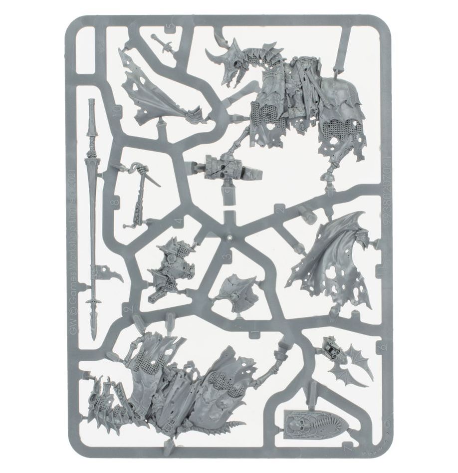 Wight Kings are ancient rulers, resurrected by foul necromantic magic. Some of these Deathrattle monarchs take to battle atop ancient skeletal steeds, clad in rusted barding. These mounted warrior-lords typically ride at the very forefront of the undead advance, stampeding the enemy into dust and driving their lances into the hearts of the living.