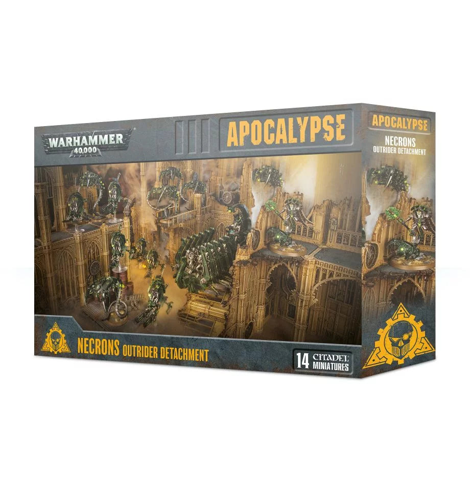 Comprising everything you'll need and more to form an Outrider Detachment in Warhammer 40,000: Apocalypse (or to kick-start your Necrons collection with a bang), the Necrons Outrider Detachment set includes your three mandatory Fast Attack units (and a fourth for good measure!) as well as an HQ choice to lead it – and the options of building either a troop Transport or devastating Heavy Support choice. As a Character, the Cryptek can also serve as the Detachment’s Warlord, enabling you to generate an additional Command Asset each turn.