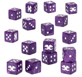 The Fourth Tyrannic War began with Hive Fleet Leviathan, and now you can celebrate their commitment to eating everything in sight with a pack of 16 Leviathan-themed dice, cast in swirly purple plastic and sporting their pips, and the Tyranid faction logo, in white ink.