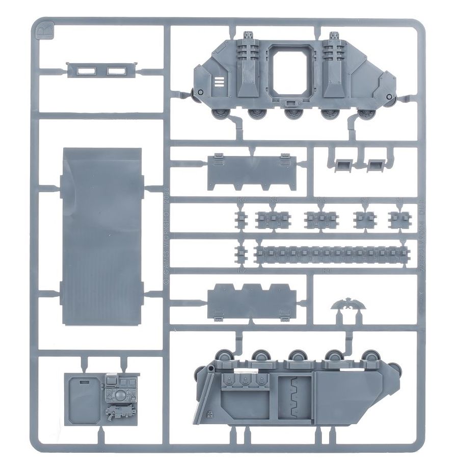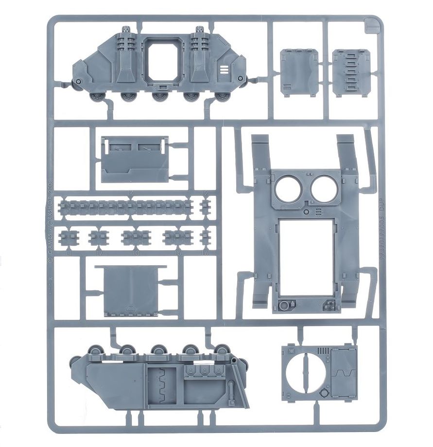 The kit comes with a wealth of optional extras including a filigreed glacis plate, arched viewing ports and a hunter-killer missile. It also features a fully-detailed interior, with a communications array and boltgun on arming rack, and an optional Sororitas driver/gunner.