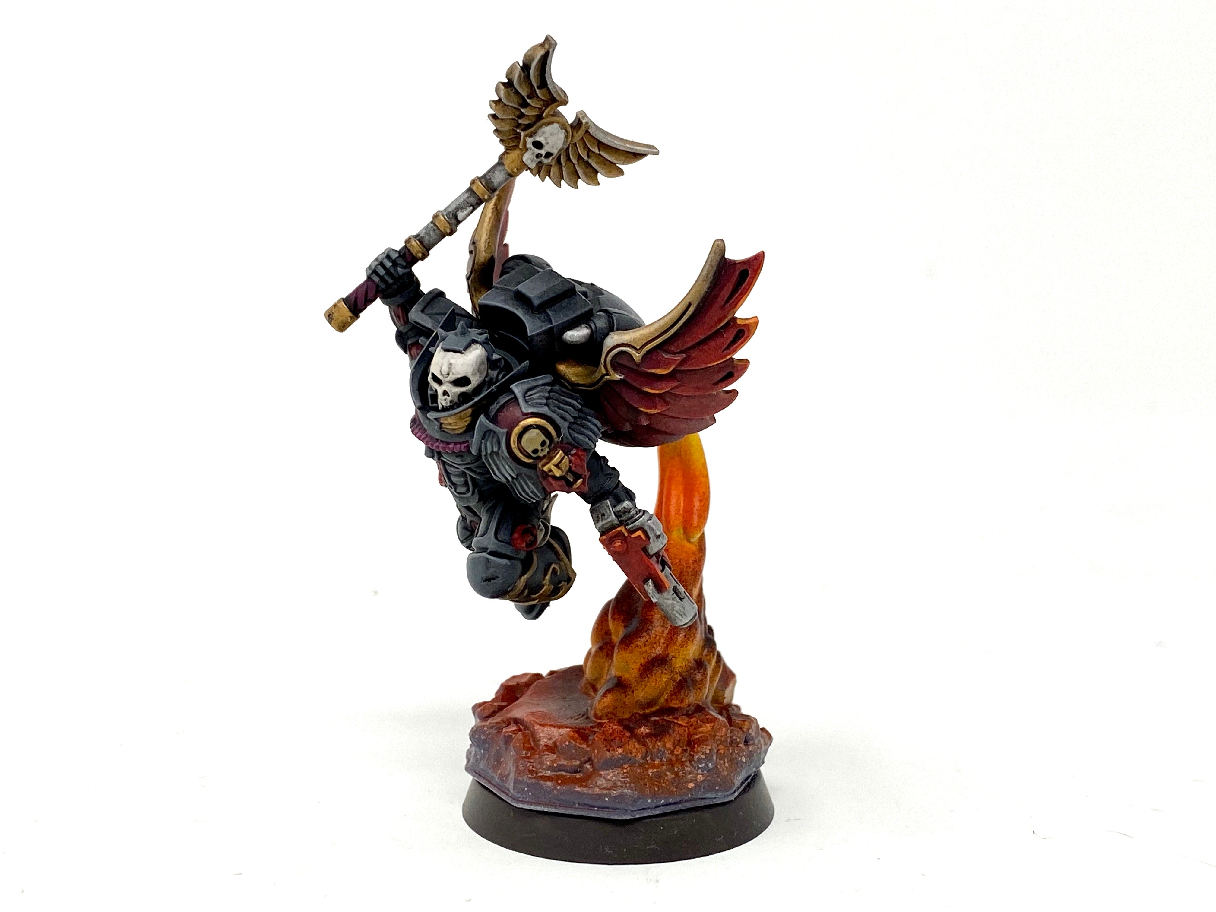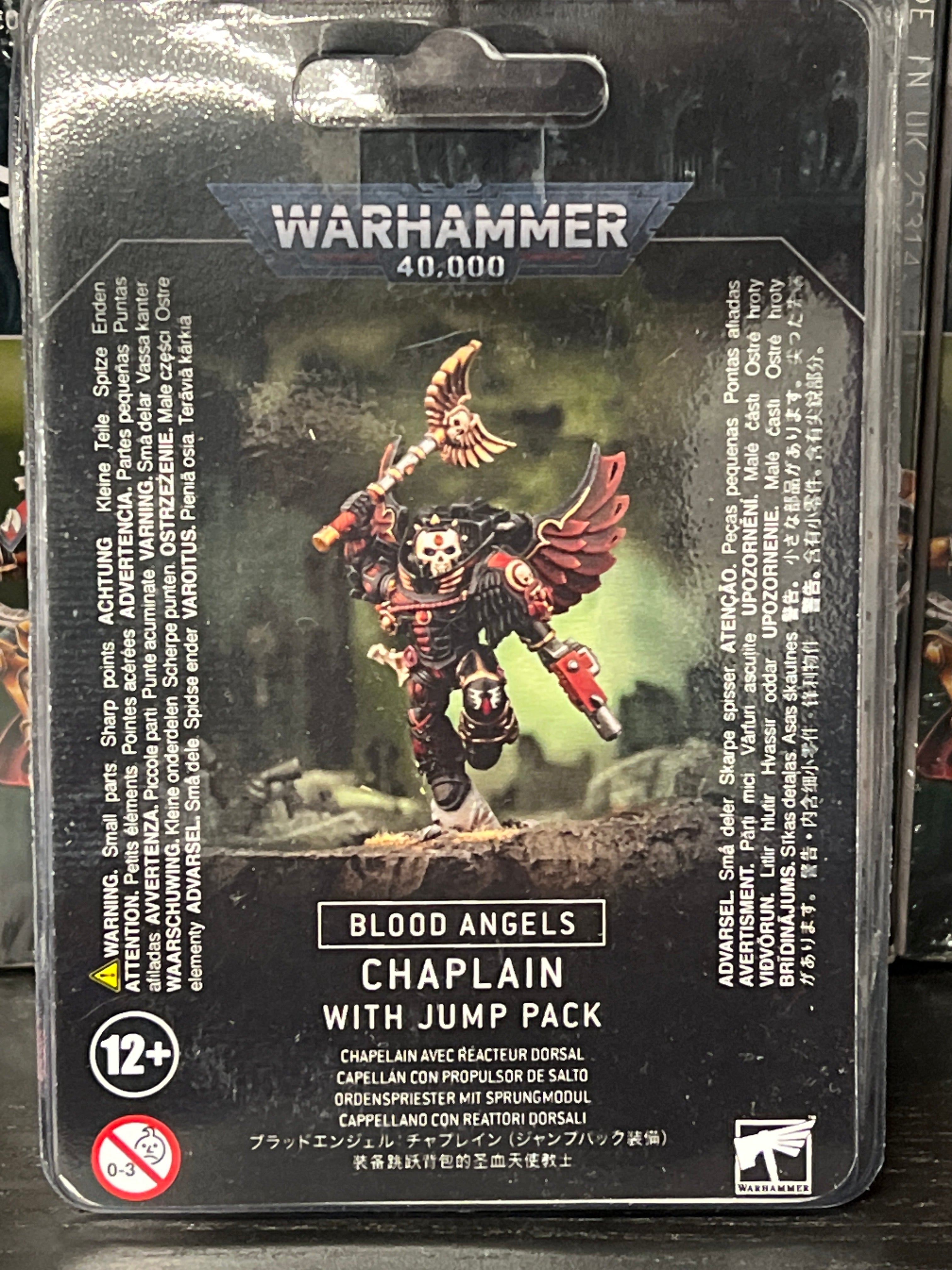 This kit contains all the components necessary to assemble on Blood Angels Chaplain with Jump Pack, a single-pose miniature. Armed with an Inferno Pistol and wielding a Crozius, the tread of his boots features a Blood Angels symbol - grind this icon into the faces of your foes! Supplied with one Citadel 32mm Round base.