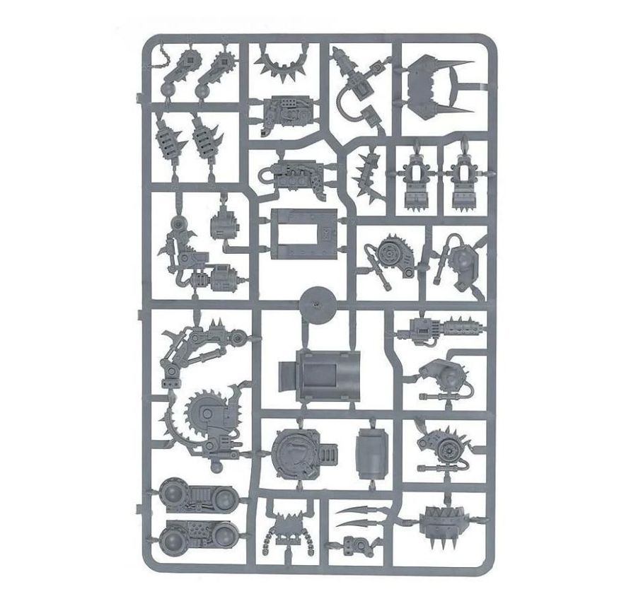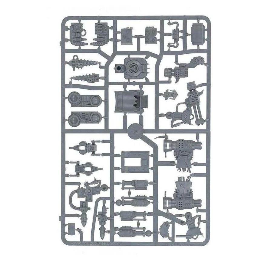 This box set contains three multi-part plastic Ork Killa Kans. This 94-piece set includes: three variations of Cockpit, three different close combat weapons, a big shoota, a rokkit launcha and a skorcha. Also included are a host of glyphs, armour plates, horns, metal teef and dangly bitz.