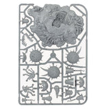 This multi-part plastic kit contains the components necessary to assemble a Feculent Gnarlmaw. Dominated by 3 large bulbs describing a Nurgle icon, covered in chitinous bumps and boils (this is not a model for the tryptophobic!), the Gnarlmaw looks almost like some struggling creature rather than the twisted tree it allegedly is. An enormous mouth runs up the centre of the trunk, with dozens of razor-sharp teeth lining it, while the few stunted branches that grow from it feature dismal bells, tentacles and more pustulent boils. A Nurgling is depicted emerging from the rear, and the base of the model is detailed with the skulls of those who have been foolish enough to venture near…