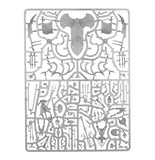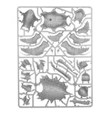 This multi-part plastic kit contains the components necessary to assemble an Akhelian Leviadon. A large centrepiece model, it looms large above the Thralls and Reavers of an Idoneth army. 6 fins, 3 either side, propel it through the phantasmal seas; the frontmost pair of these are fitted with segmented blades, with the others featuring smaller but equally effective spurs, and each pair – along with the tail section, also fitted with piercing spurs – can be modelled in differing positions allowing for the illusion of flowing movement. Its head features an aggressive profile, with horns and spikes (and the option of a closed or open mouth), but the most notable feature is the blinders and chains – this beast is enslaved to the Ma’harr who stands to the front of the howdah, guiding it into battle. 2 crew either side each man a razorshell harpoon launcher and a Void Drummer – whose insistent pounding beat distorts light itself, providing cover from enemy fire – stands at the back.