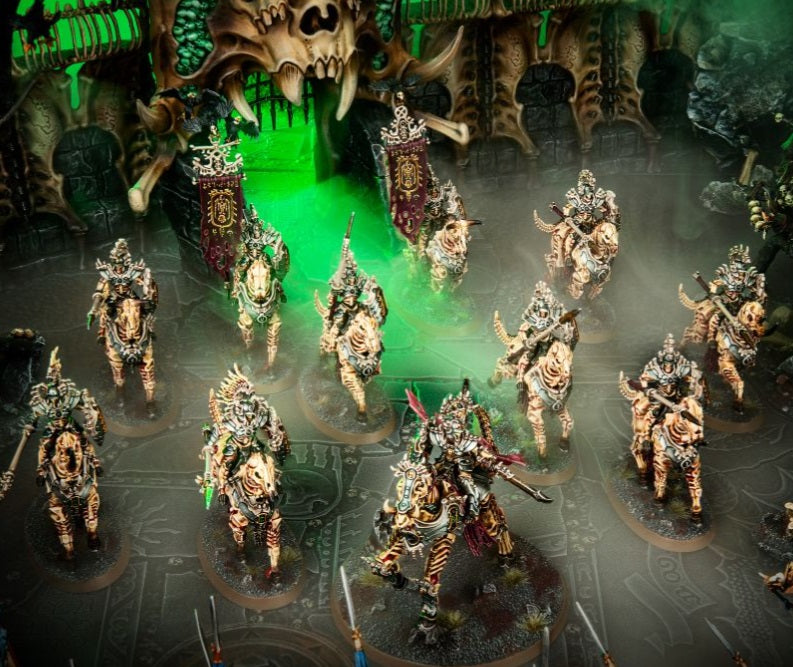 Smash interlopers into Nagash's domain with disciplined charges of deadly Ossiarch cavalry. This warscroll battalion in a box includes two units of Kavalos Deathriders, plus a Liege-Kavalos. Combine the models in the set with the rules found in Broken Realms: Teclis and you’ll be able to easily field the Horrek's Dreadlance warscroll battalion, representing Horrek Venzai's well-drilled elite cavalry. This box also saves you money compared to getting the models separately!