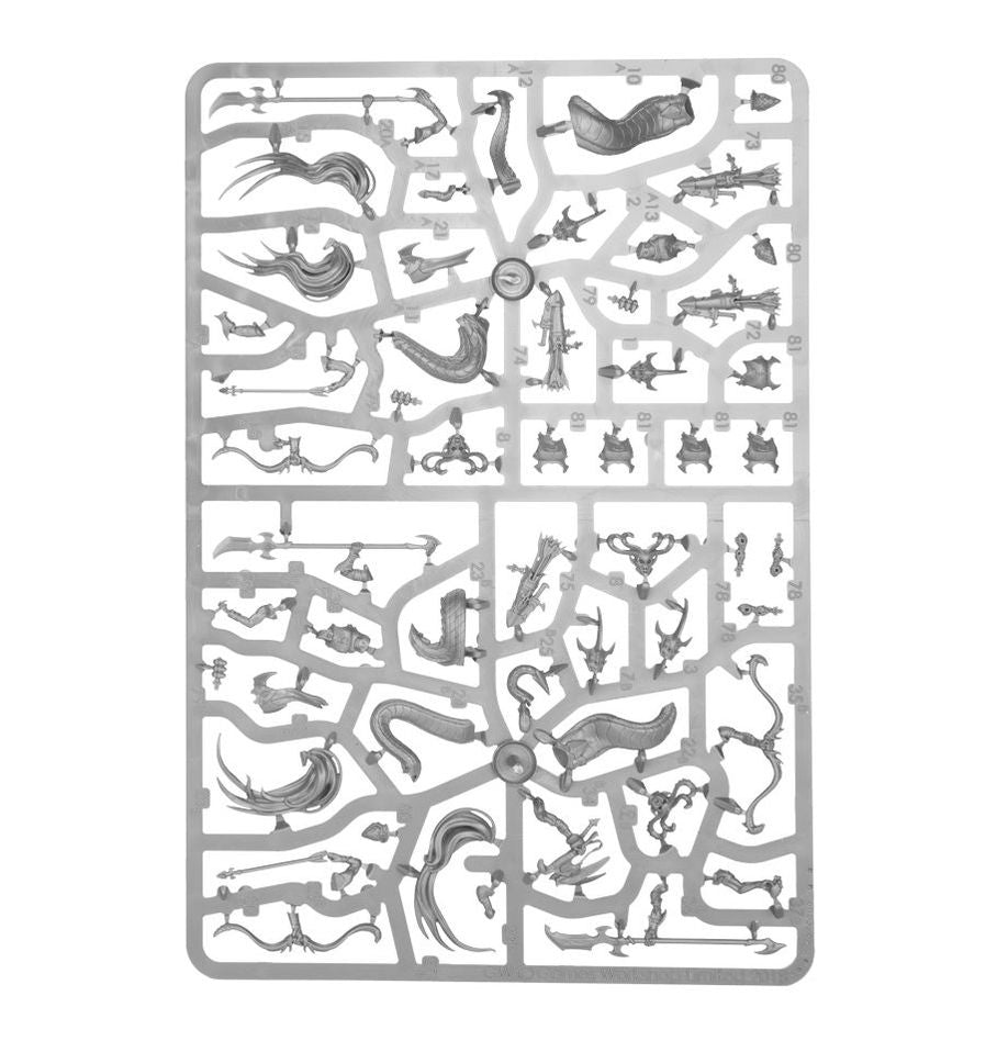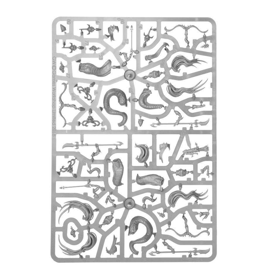 The Melusai Blood Sisters come as 100 components, and are supplied with 5 Citadel 40mm Round bases. This kit can optionally be used to assemble 5 Melusai Blood Stalkers.