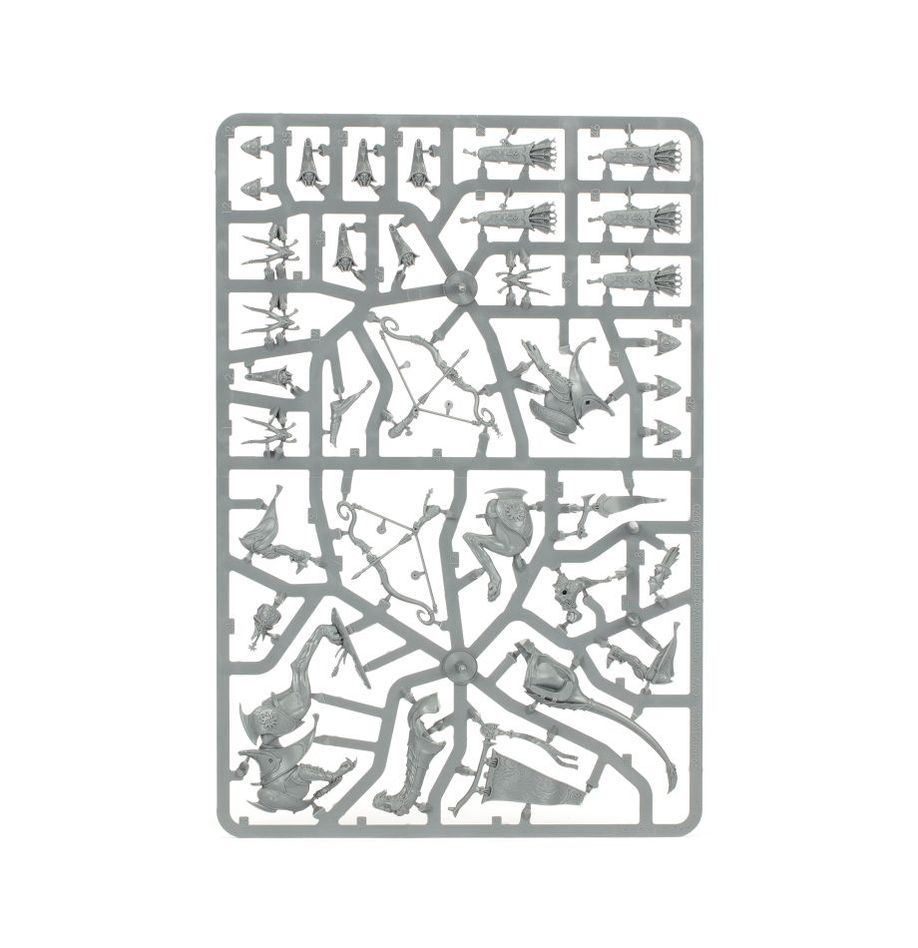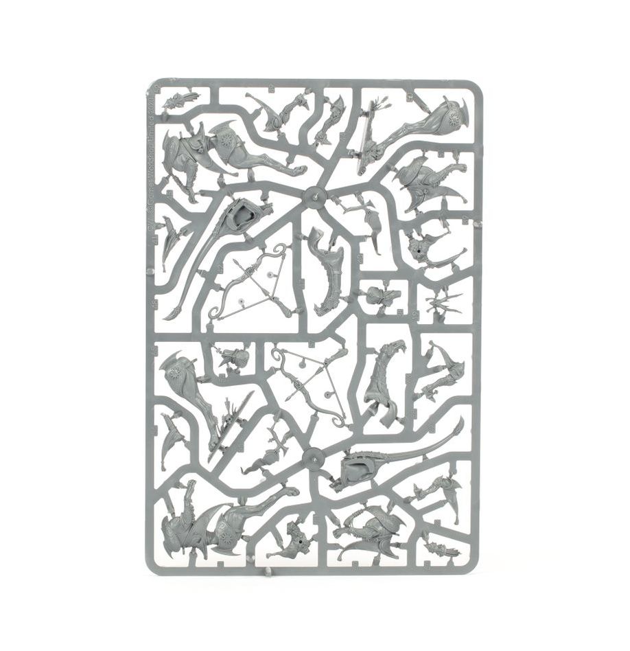 As some of the finest mounted archers in the Mortal Realms, these peerless warriors are equally comfortable firing their bows at a breakneck gallop as they are in the storm of melee combat. Their treerunner steeds are so agile they race through dense terrain as if it wasn't there, making them excellent flanking cavalry.