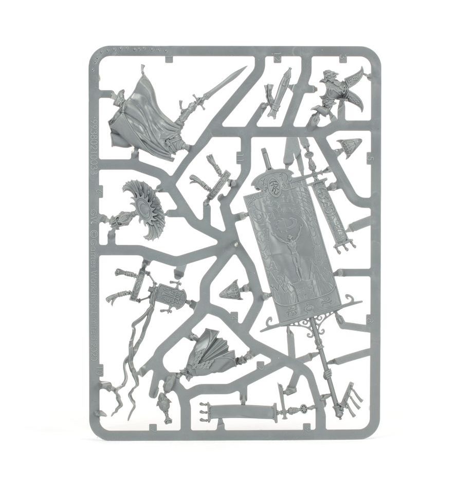 The kit is comprised of 12 plastic components, with which you can assemble one Vanari Bannerblade, and is supplied with 1x Citadel 40mm Round Base.