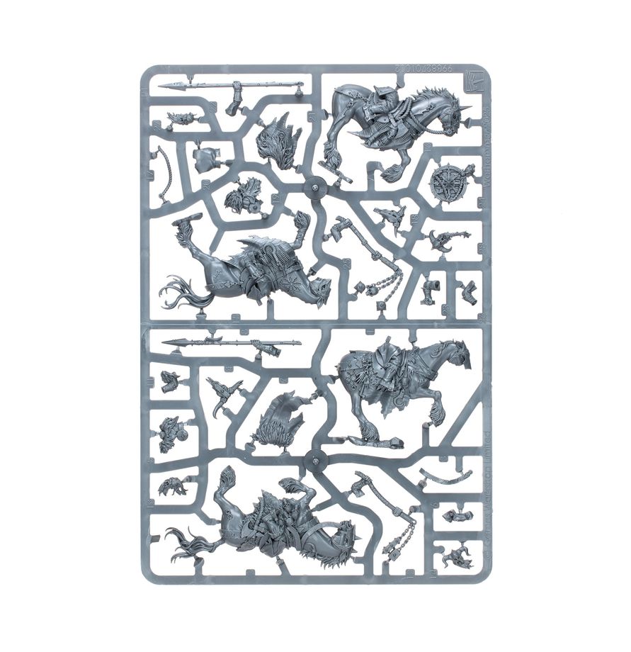 This multipart plastic kit builds ten Chaos Marauder Horsemen, savage mortal cavalry for your Warriors of Chaos armies in games of Warhammer: The Old World. These frenzied warriors hail from the frozen wastes of the north and are prepared to unleash cold fury on the enemies of their Dark Gods. If you're looking for an agile unit to harass the enemy and finish off weakened foes, the Marauder Horsemen are ideal.